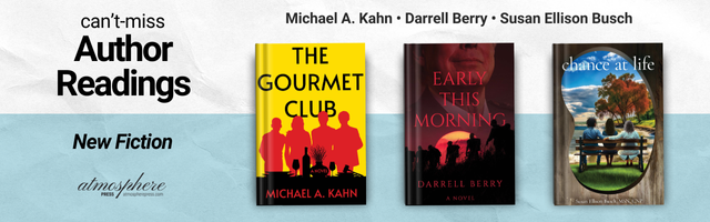 Join Atmosphere Press for a cozy Thursday reading with Michael A. Kahn, author of The Gourmet Club: A Novel, Darrell Berry, author of Early This Morning: A Novel, and Susan Ellison Busch, author of Chance at Life.